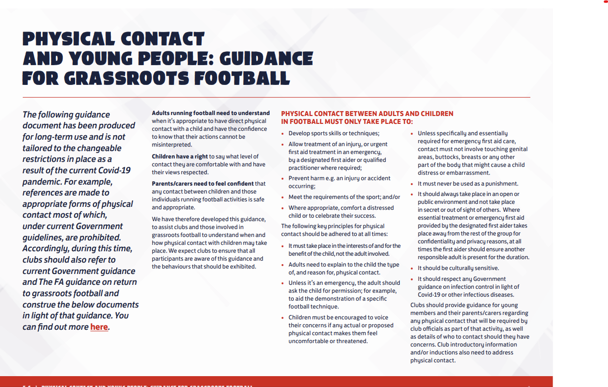 Physical Contact young people Guidance